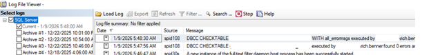 At this point, we have fixed the full text indexes on this database. We may, however, have issues with multiple databases. If we check the SQL Error log and see new errors appearing, then we haven’t quite fixed the whole problem. We will want to go through this process again (check the logs, rebuild indexes, cycle error log files) until we’ve fixed all our problems.
